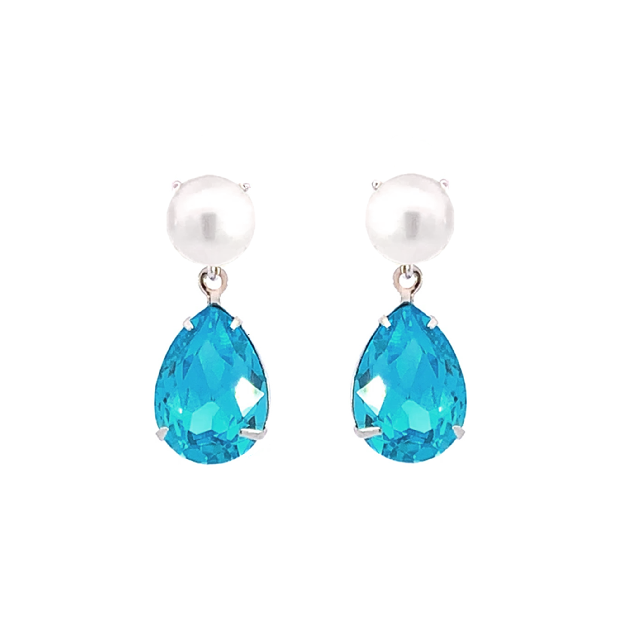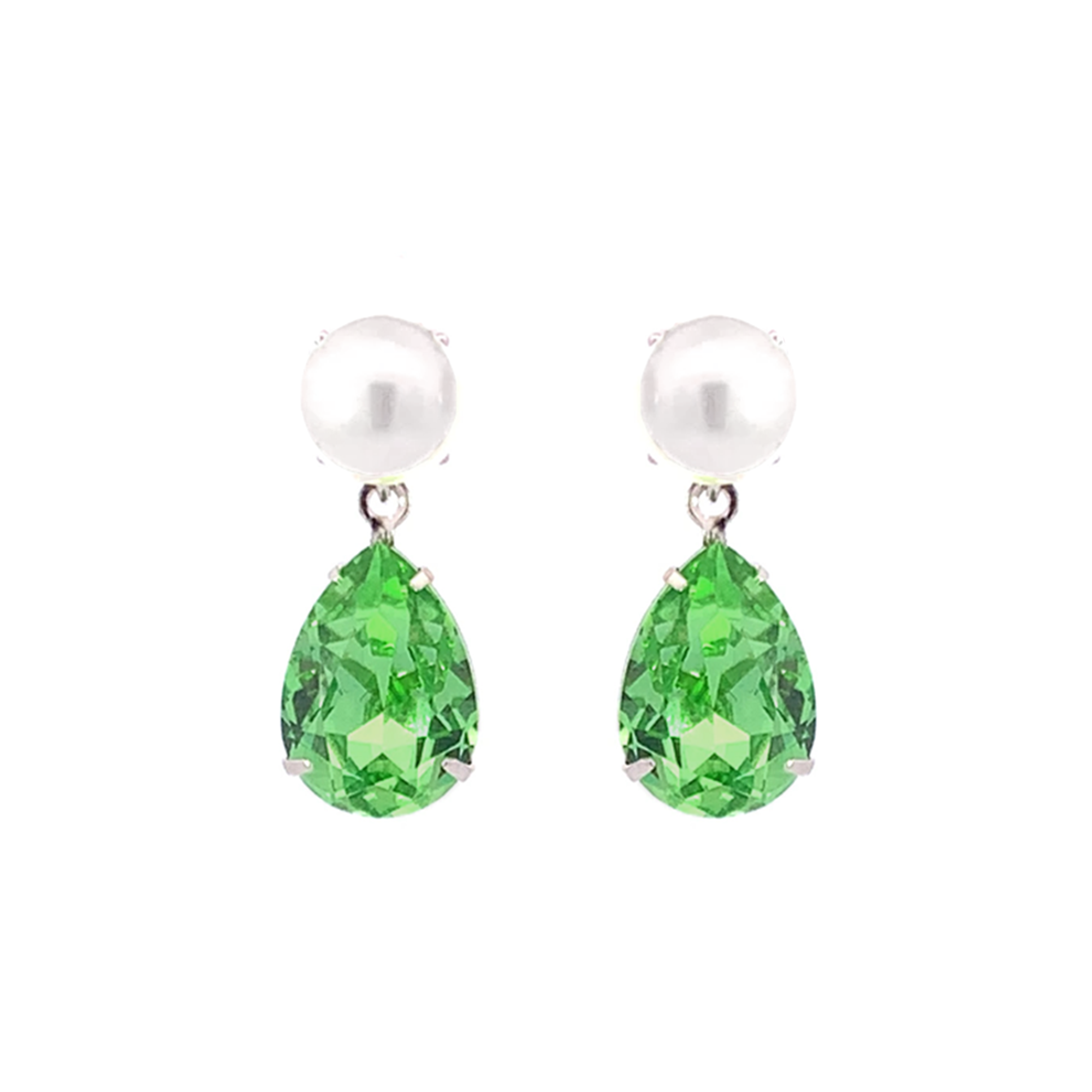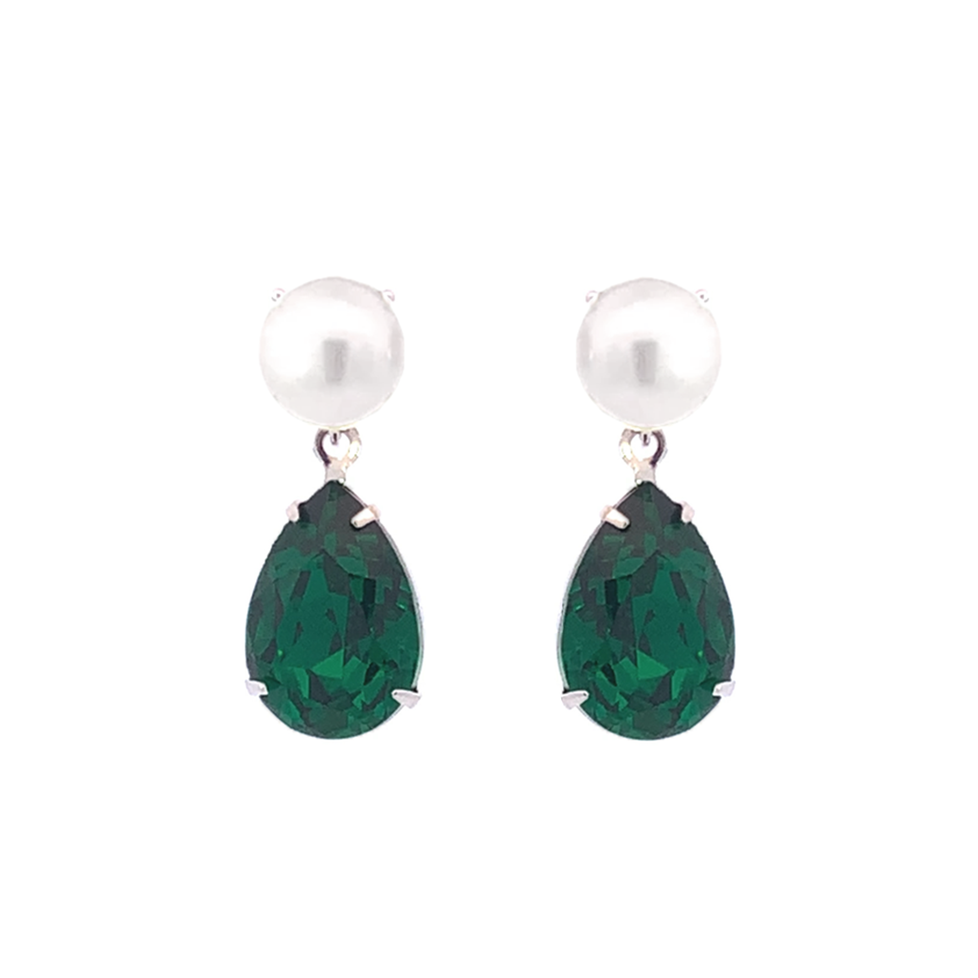 June birthstone earrings made with sparkly crystals and pearls. The alexandrite gemstone symbolizes luck, love, balance, imagination, and confidence.