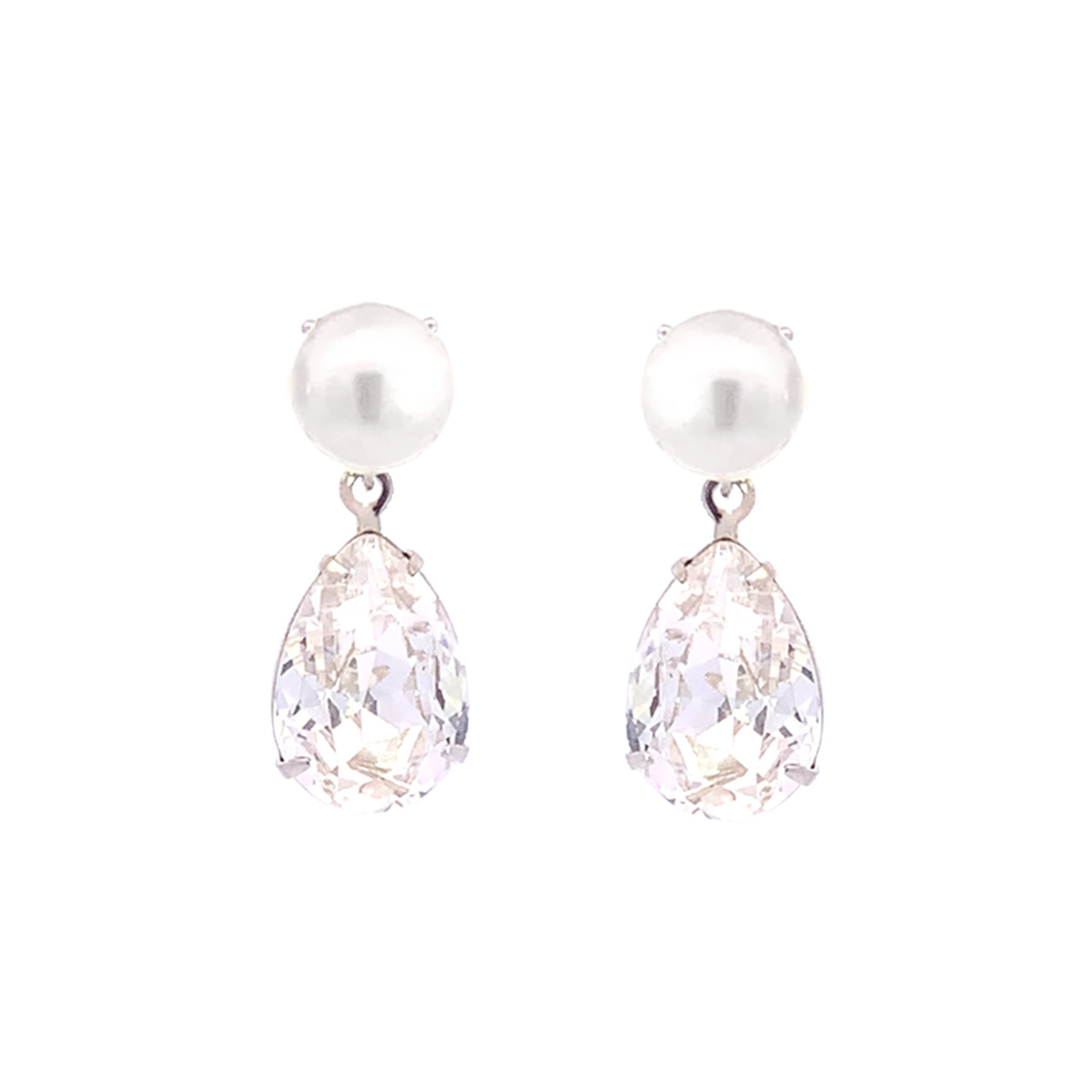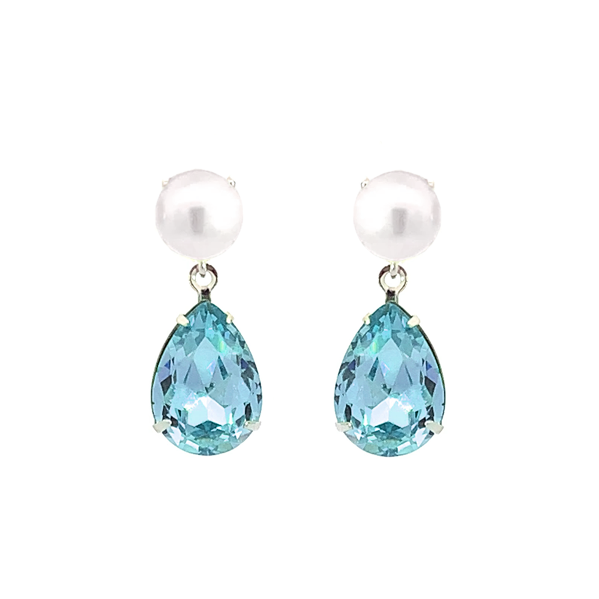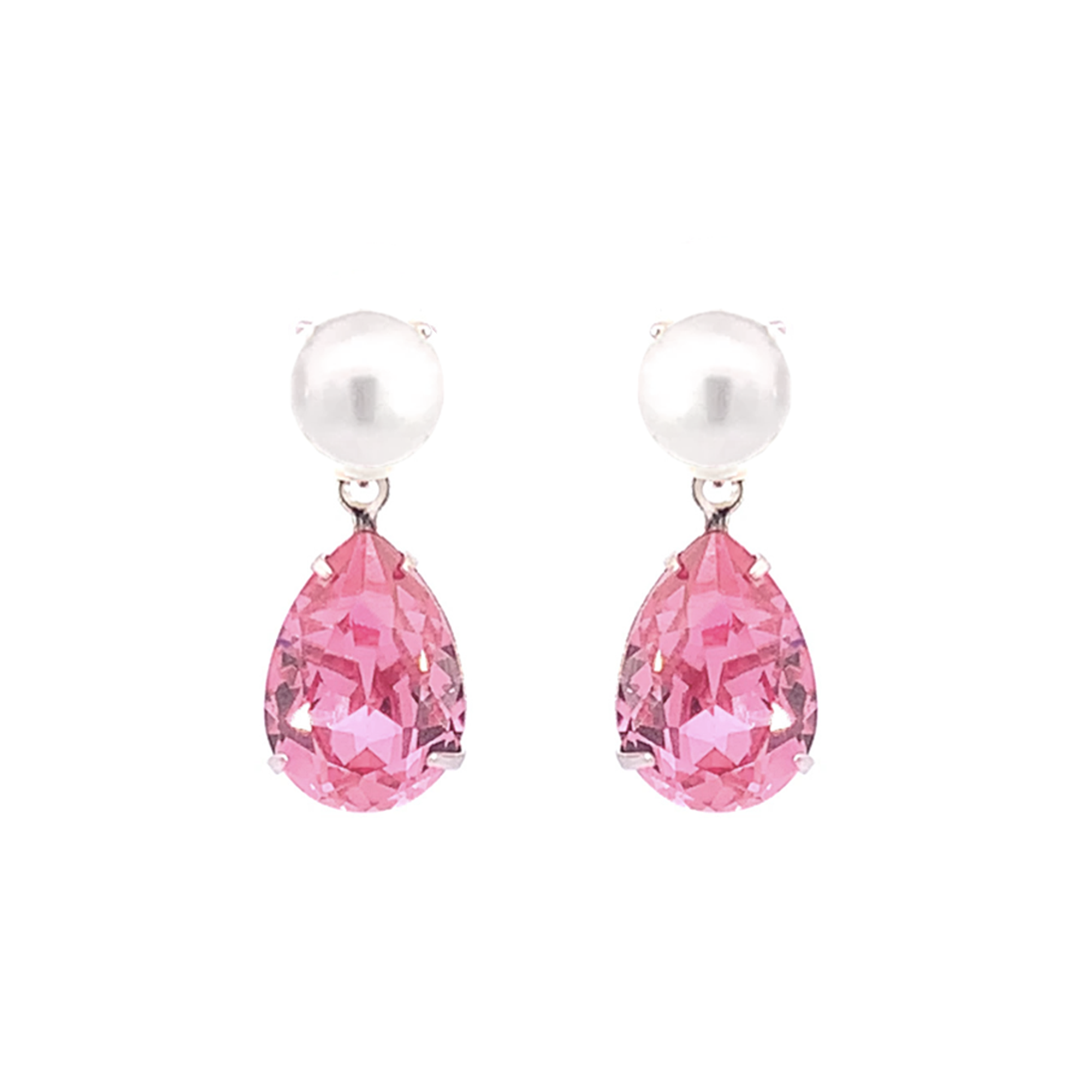 June birthstone earrings made with sparkly crystals and pearls. The alexandrite gemstone symbolizes luck, love, balance, imagination, and confidence.